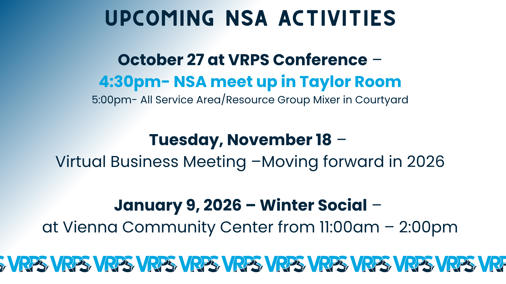 NSA Meet Up @ VRPS!! 4:30pm on October 27 in the Taylor Room- We can't wait to see you!